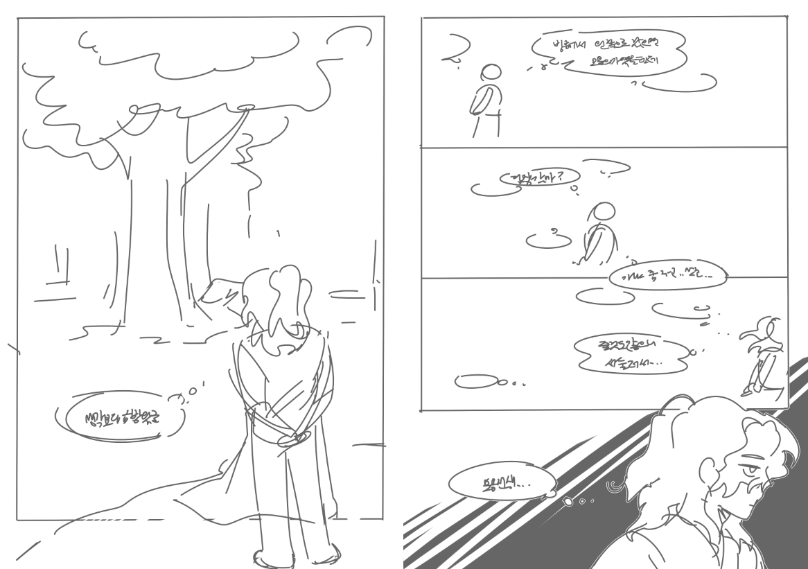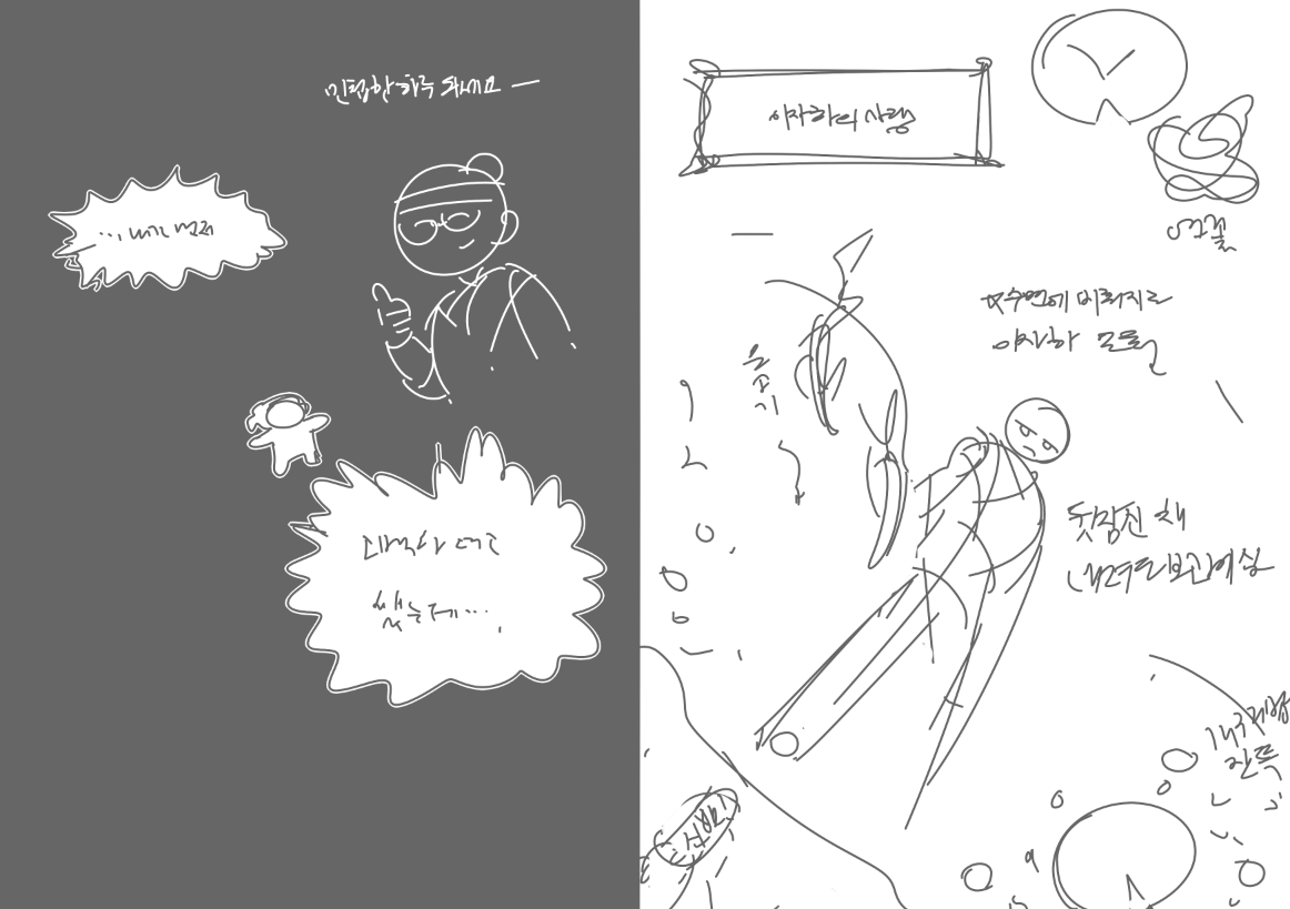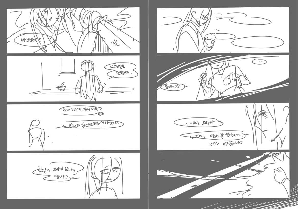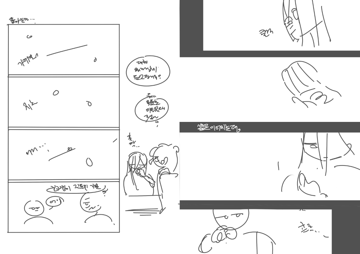 언젠간 그림콘티라도 완성해서 러프본으로나마 보일 수 있게 되면 좋을 것 같긴 하네요