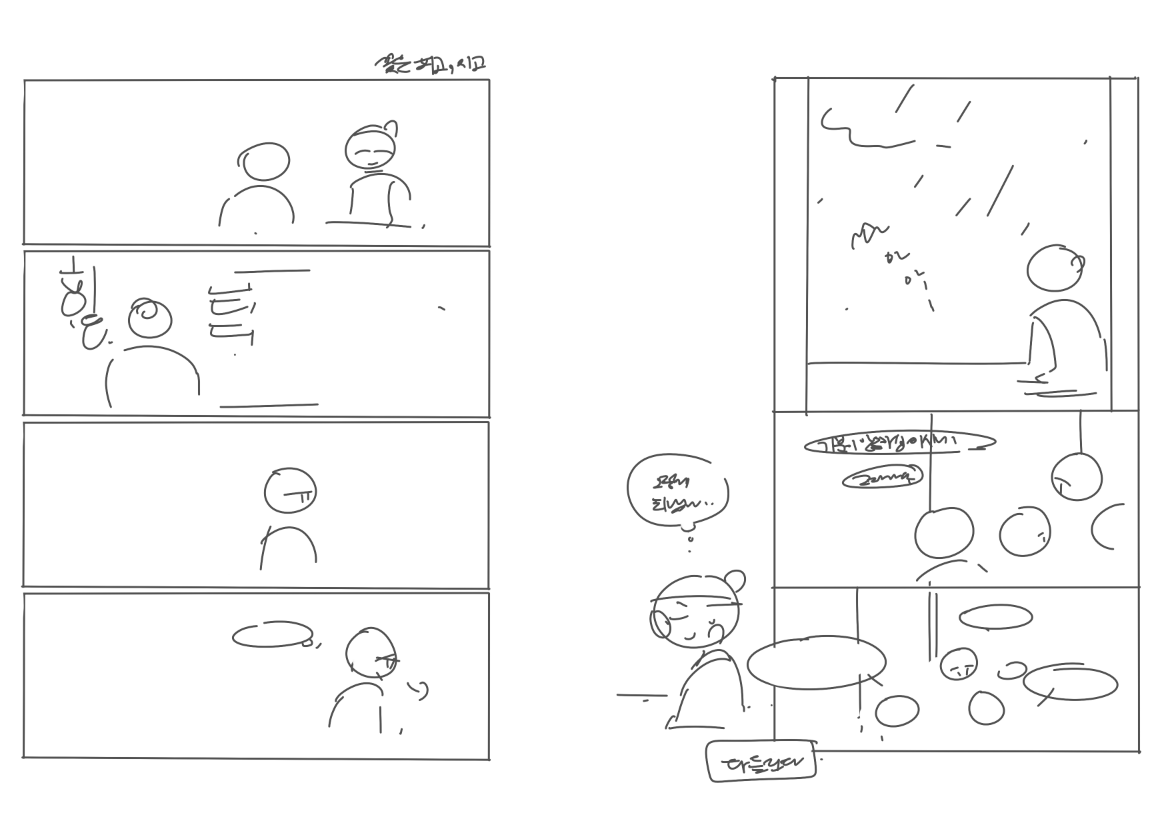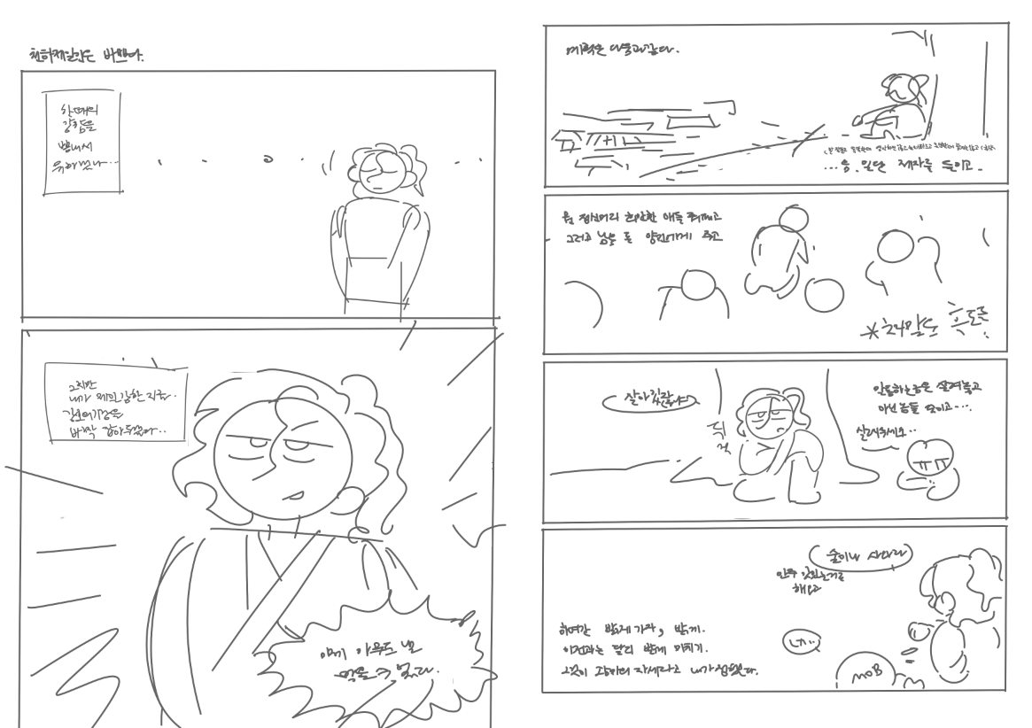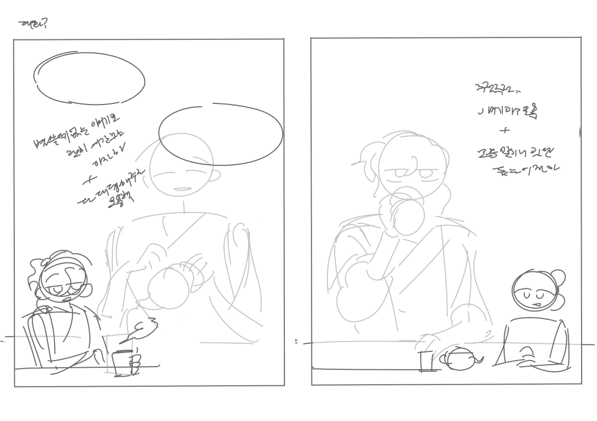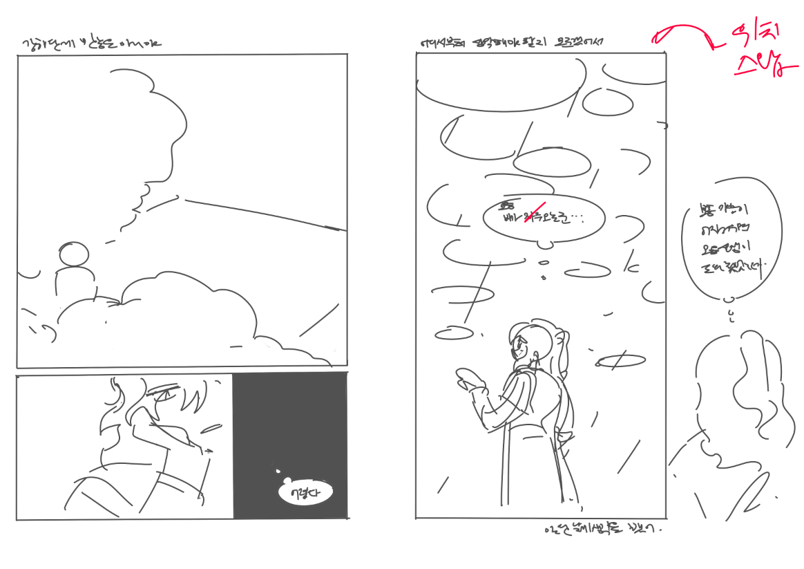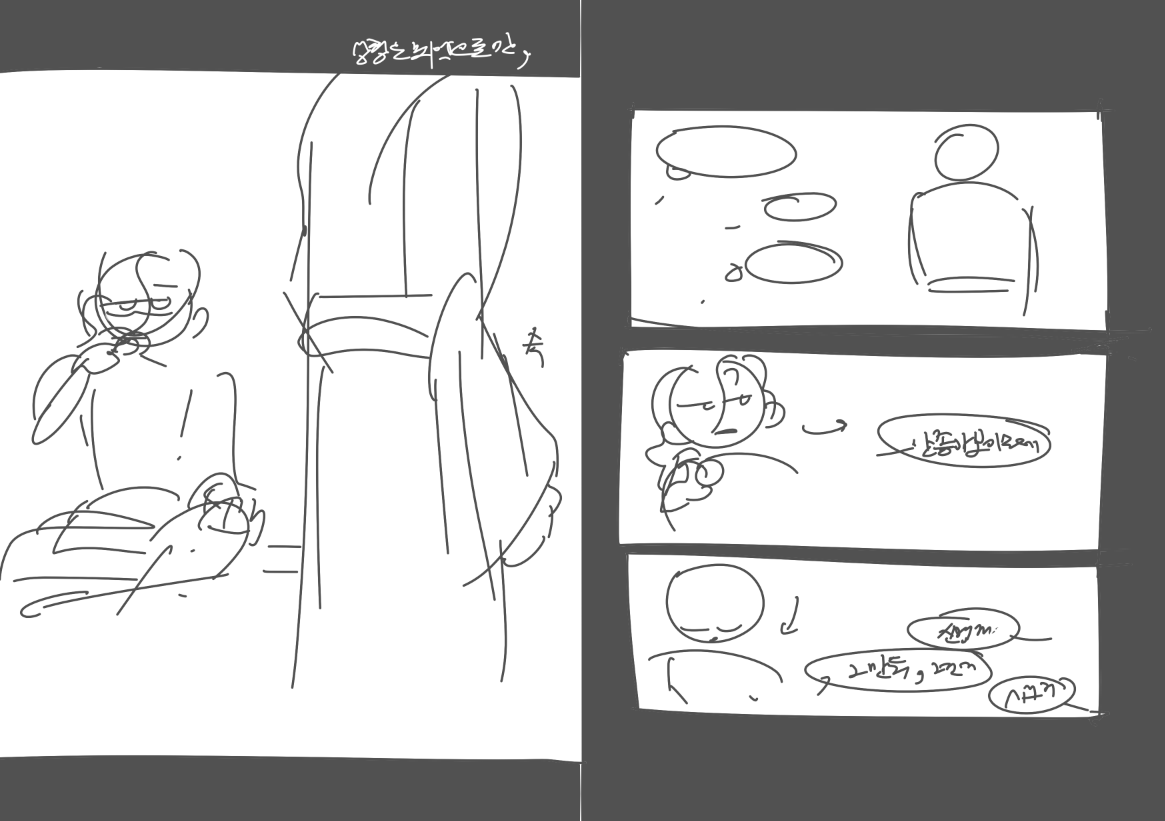 언젠간 그림콘티라도 완성해서 러프본으로나마 보일 수 있게 되면 좋을 것 같긴 하네요
