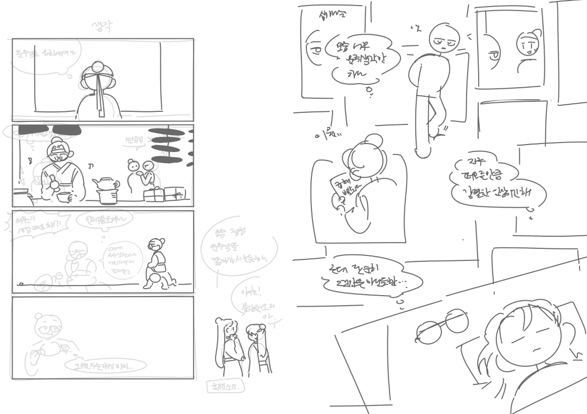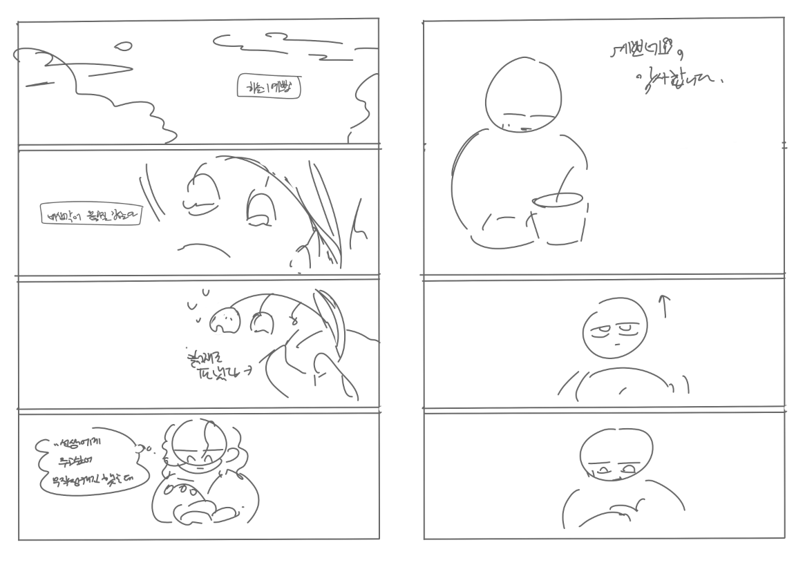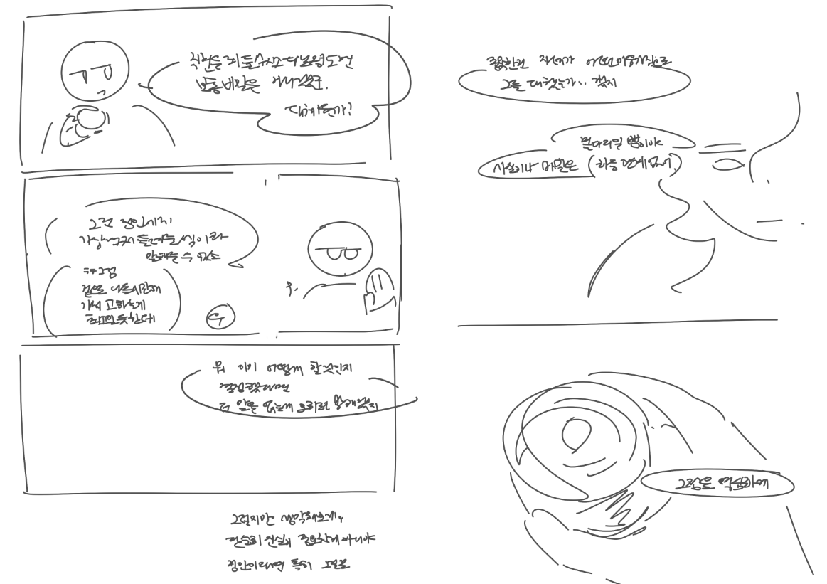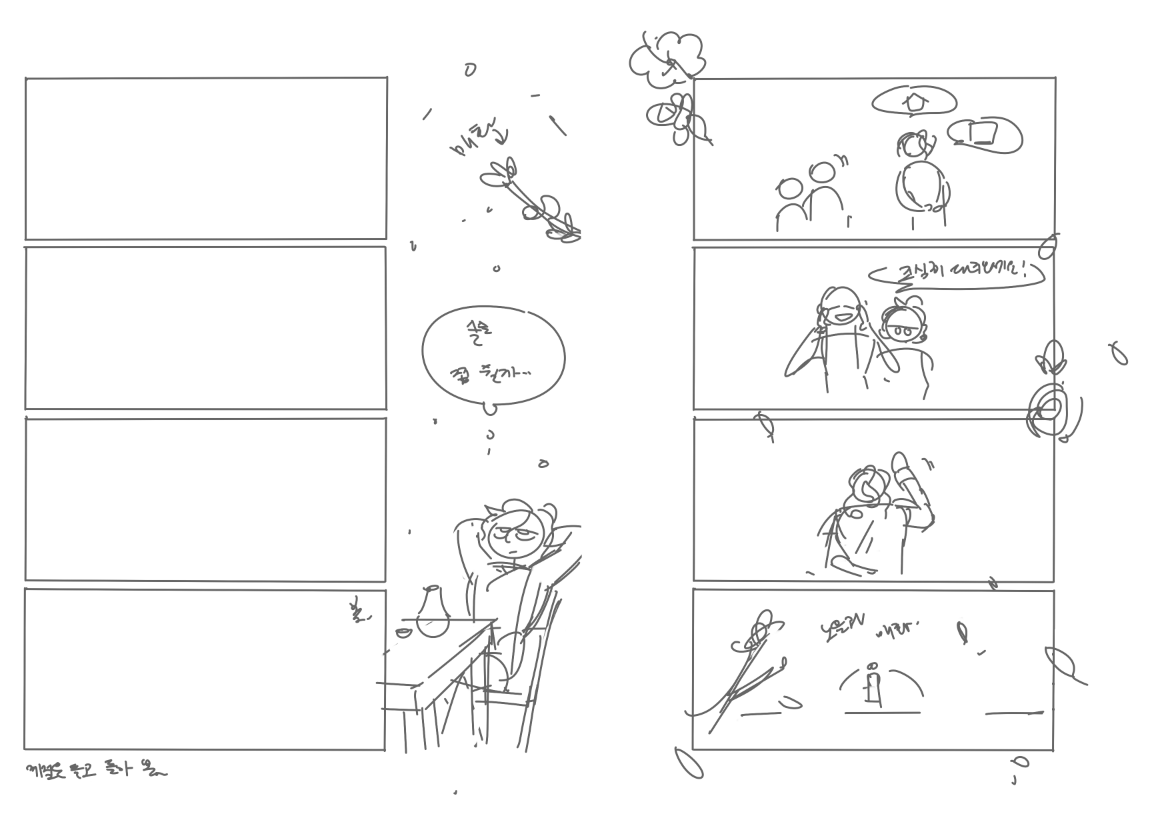 언젠간 그림콘티라도 완성해서 러프본으로나마 보일 수 있게 되면 좋을 것 같긴 하네요